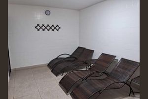 Ele dispõe de sauna para relaxamento e bem-estar.