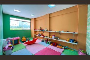 Ele dispõe de sauna para relaxamento e bem-estar, parquinho para a diversão das crianças e equipamentos para a prática de exercícios.