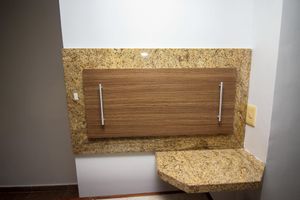 Ele dispõe de ambiente intimista para cozinhar e receber visitas.